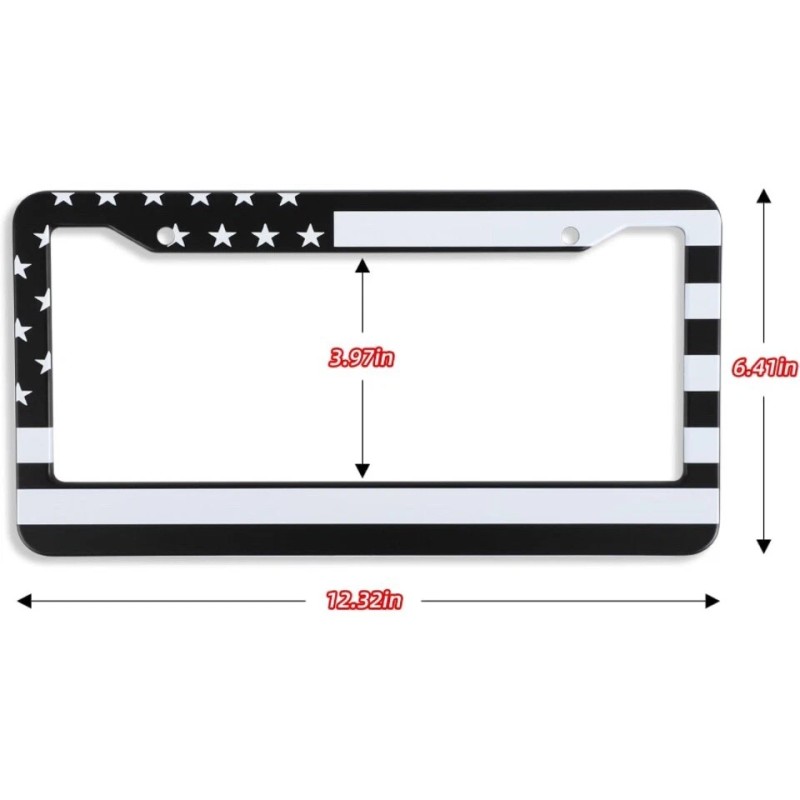 Show off your patriotism with this sleek and stylish American Flag license plate frame from BDK. Made of durable metal and designed with a matte finish, this frame fits most standard size license plates and features a secure clasp to keep your plate safe and secure. Measuring 6 1/4" x 12 1/4", this frame is the perfect addition to any car or truck.