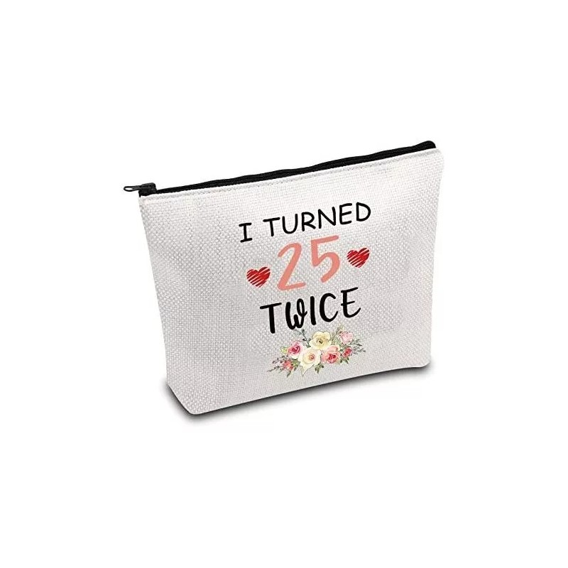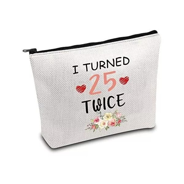 Bolsa con las palabras: Cumplí 25 años dos veces. Divertido neceser de maquillaje cosmético para mujer que cumple 50 años para celebrar su cumpleaños número 50. Regalo de cumpleaños ideal para tu esposa, madre, abuela, tía, hermana, novia o mejores amigas.