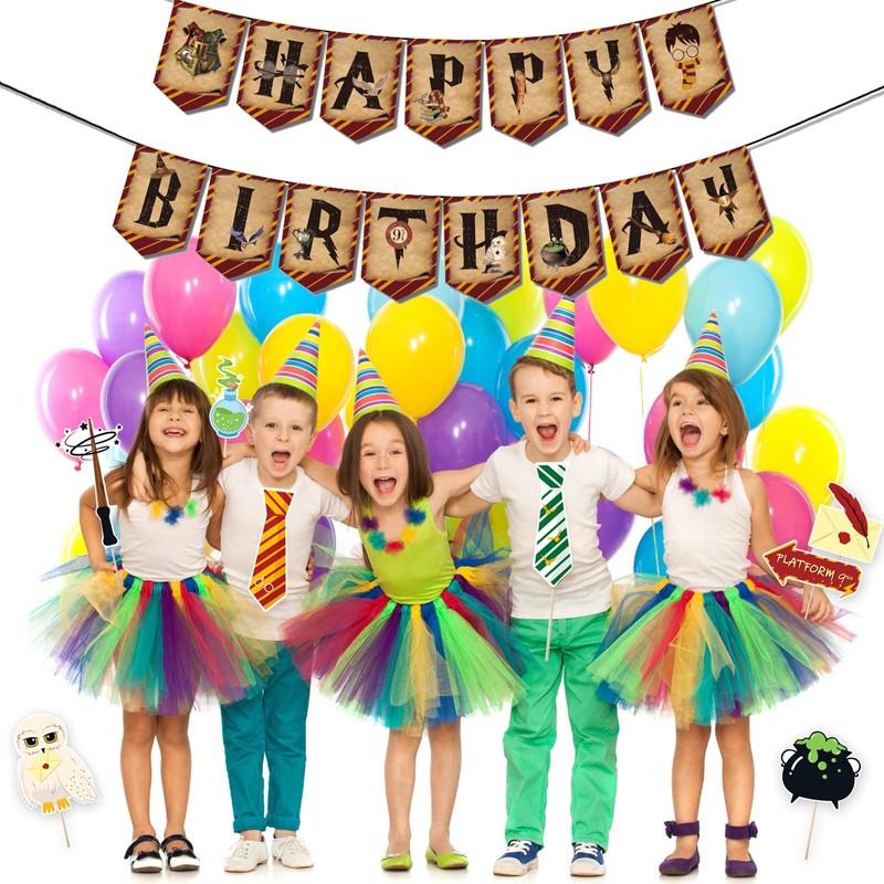 - Package contents: This party photo booth prop mix contains 26 different stylish and fun pattern props such as glasses, a flying broom, a wizard hat, a school uniform, an owl, a magic wand, a uniform, a cauldron, a college tie and many other graphics as well as a themed pull flag.