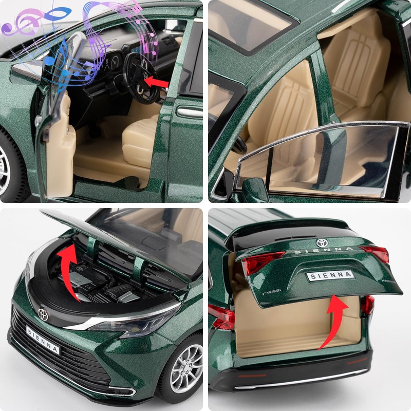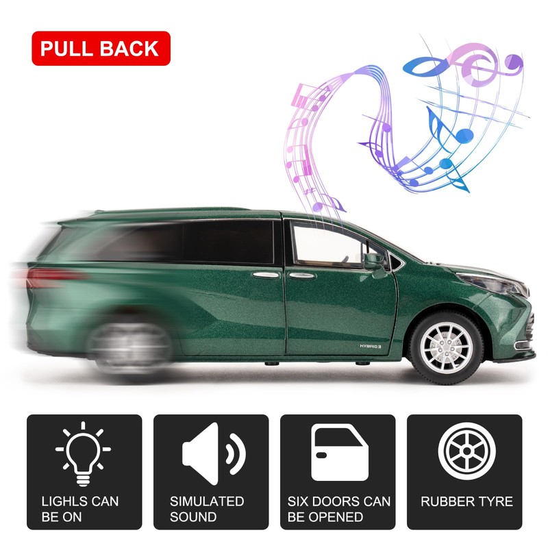 BDTCTK 1:24 Compatible for Sienna Car Model, Pull Back Diecast Toy Car with Sounds&Lights for Kids Boys Girls and Adults, Gift Green.