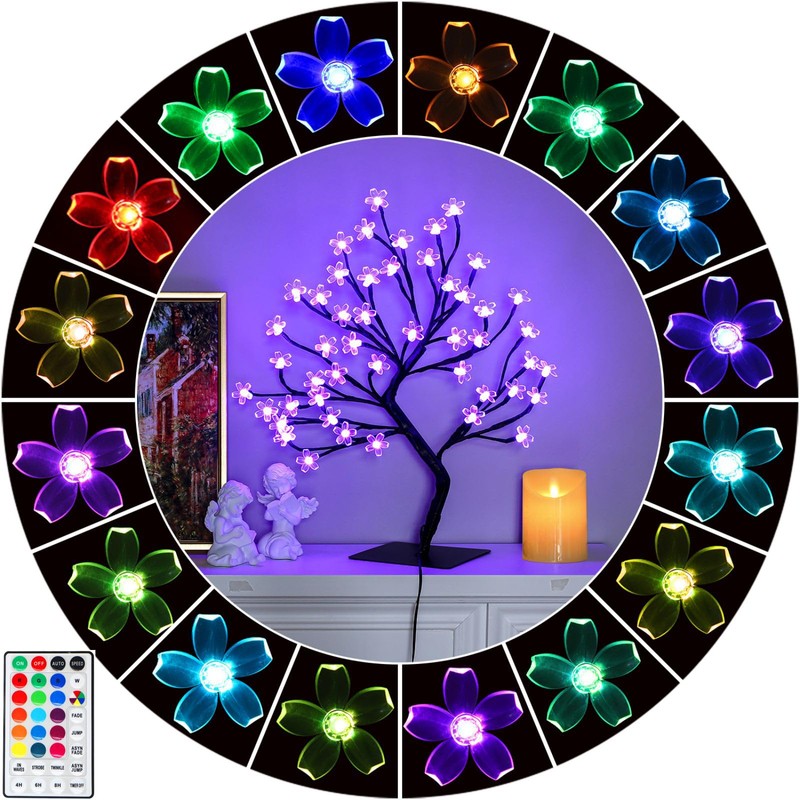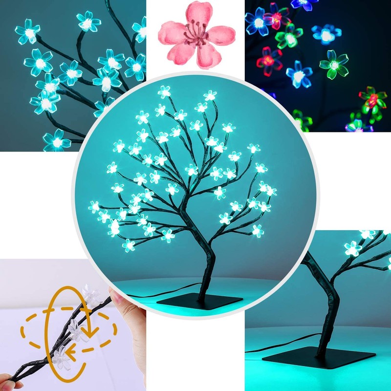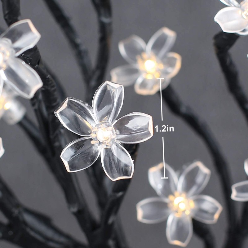 - WARM CHERRY BLOSSOM TREE--This little tree is handmaded by LED crystal-like cherry blossom petals and metal base. Overall height of 18" with 48 led light bulbs creat the warmy feeling for your house
