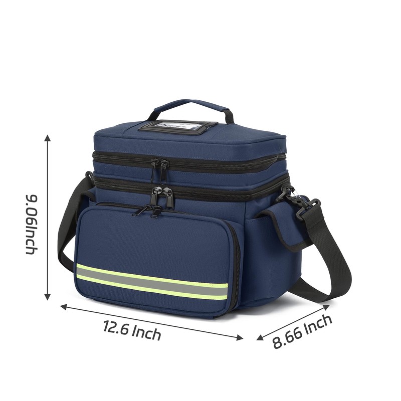 - Medical Storage Bag: Size: 12.6 x 9.06 x 8.66 inches. Made of heavy duty tear-resistant and waterproof nylon with good stitching, strong zip, non-slip feet and reflective strips. Provide good protection for your first aid supplies.