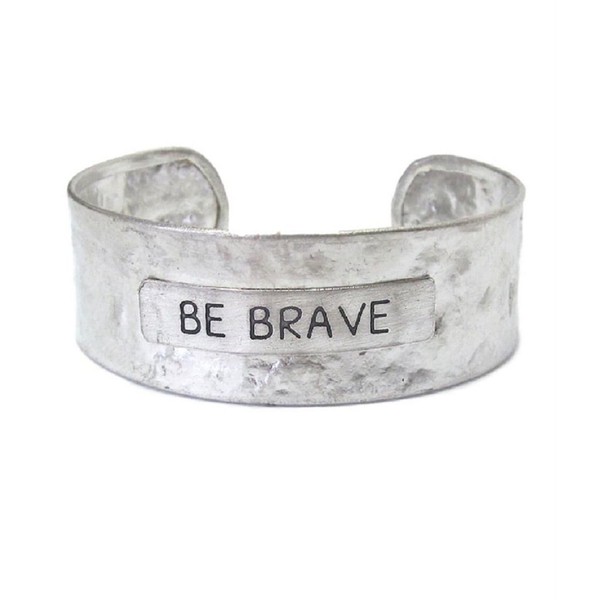 Be Brave Silver Cuff Bracelet Hammered Metal Design