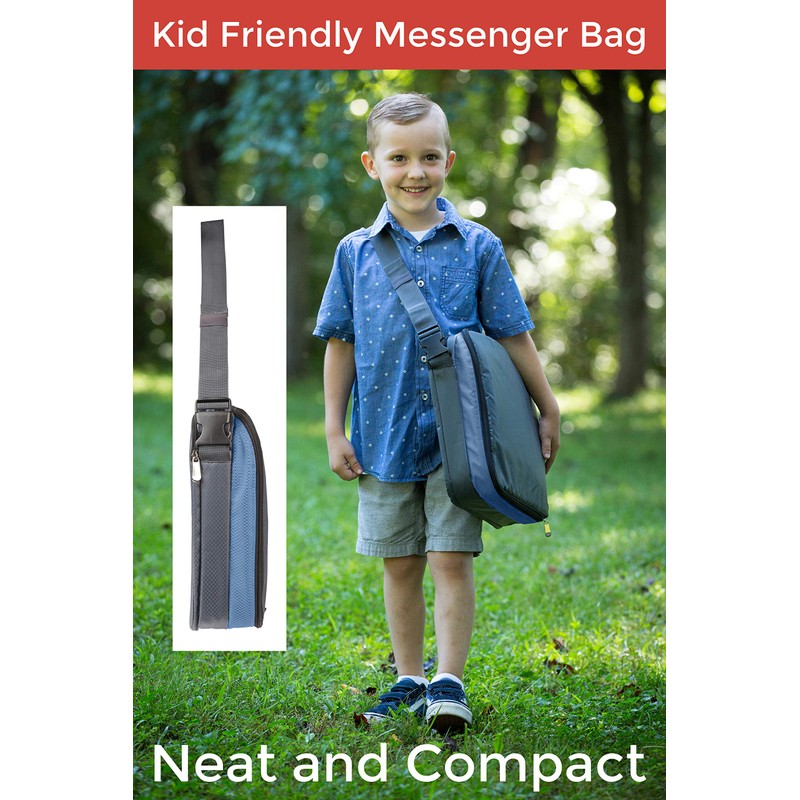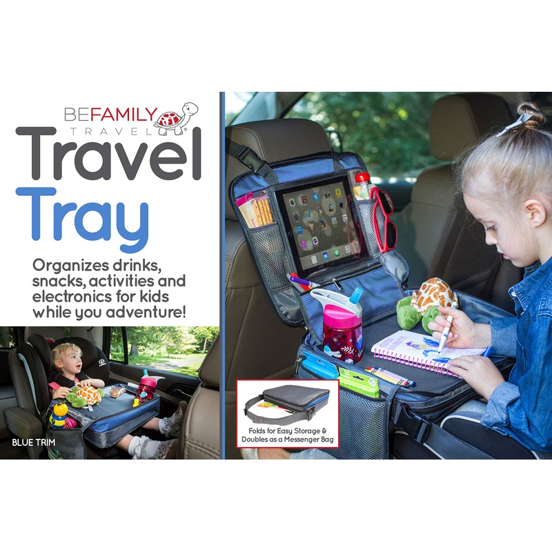 - KIDS LOVE THE MESSENGER BAG - BE Family Travel Tray quickly converts to a stylish and handy Messenger Bag that kids are proud to carry. From Home to Car Seat in a matter of minutes your child can easily unzip the bag, hook over the headrest, flip open the two side pouches and they are ready for fun. No need to unload the entire play tray when its time to go in. Our side pouches zip and fold in to make the perfect storage as an all-in-one Travel Bag for the car, airplane, or stroller etc.
