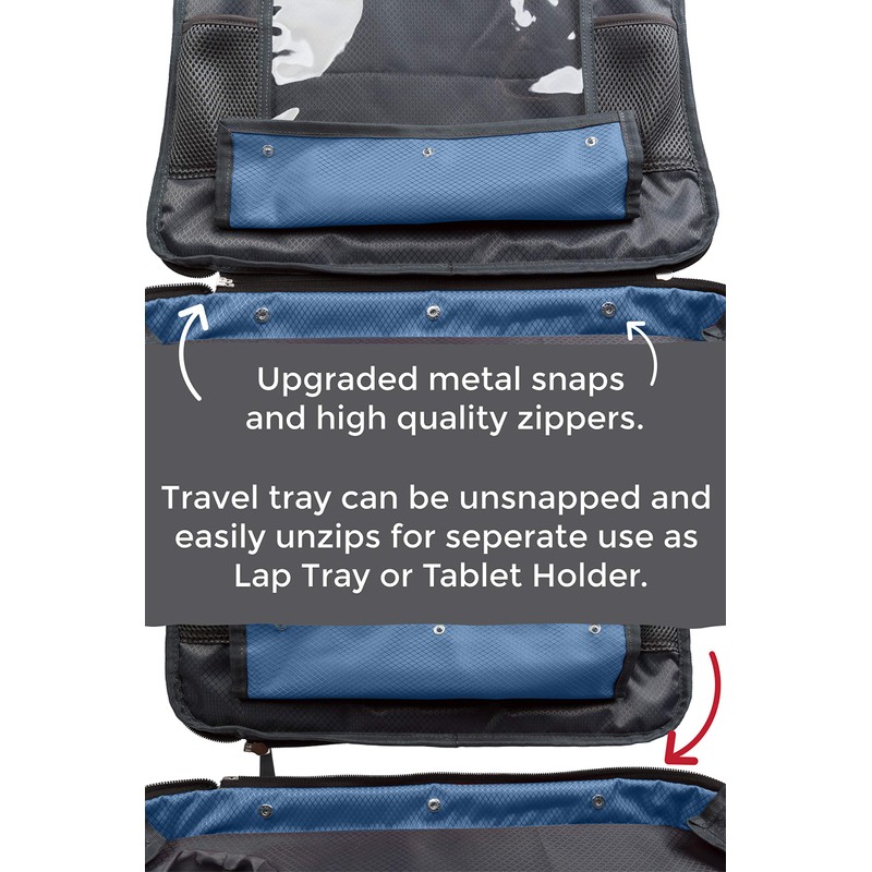- EASILY SNAPS AROUND HEADREST – We have designed our Travel Tray to quickly snap around the headrest, which makes it fast to remove during breaks or when you arrive at your destination. IMPORTANT: TRAY DOES NOT ZIP SHUT WHILE IT IS ATTACHED TO THE HEADREST. - We want your children to enjoy the journey and for you to have peace throughout your trip. Reach out, we are a family just like you who travels, and we want to help you with any questions or problems. WE ARE HERE FOR YOU, LET’S BE FAMILY!