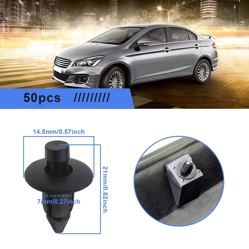 Be In Your Mind 50Pcs Vehicle Bumper Side Skirt Sills Trim Clips Plastic Push-Type Rivets Fasteners 96057846 Fits 7mm Hole Black Plastic