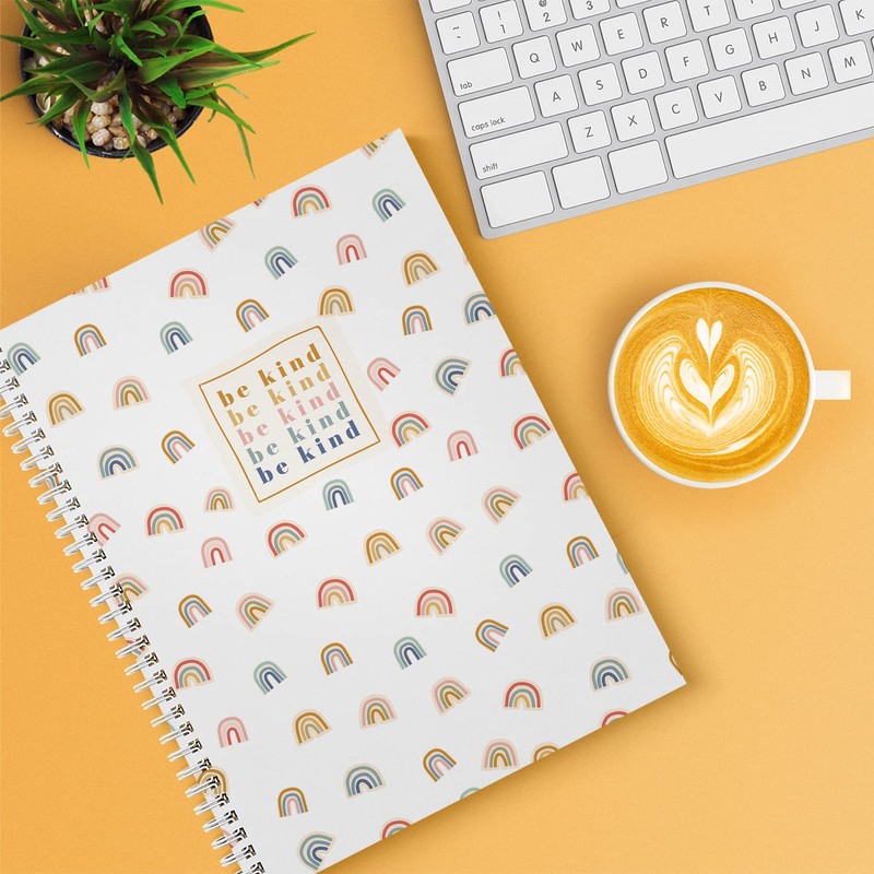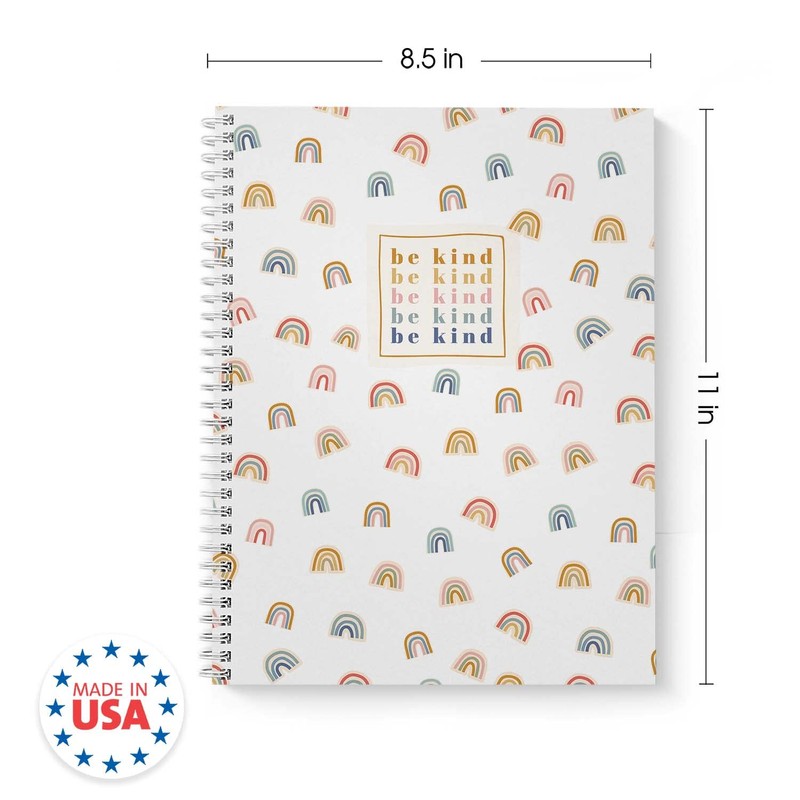 Be Kind Modern Rainbow Spiral Notebook / 8.5" x 11" Journal / 120 Wide Ruled Pages/Durable Gloss Laminated Softcover/White Wire-o Spiral Binding/Made in the USA