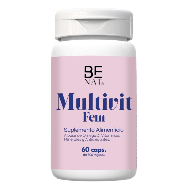 BE NAT - BE NAT |Multivit Fem| Multivitaminico y Multimineral para Mujeres, adicionado con Omega 3, Jalea Real, Arandano, Luteina y Zeaxantina ,Suplemento alimenticio en cápsulas | 30 días de consumo, 60 cápsulas 600 mg c/u. ✅ Diseño innovador que supera las expectativas. Construcción robusta y atención al detalle. 🔥 Alta demanda - Stock limitado. Ideal para quienes buscan lo mejor en calidad y estilo. Producto auténtico con satisfacción total asegurada. ¡No te quedes sin el tuyo y aprovecha esta oportunidad única!
