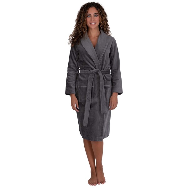 Be Relax Bathrobes for Women - Fashionable Bath Robe - Knee Length Terry Cloth Robe with Belt & Front Pockets - Absorbent & Machine Washable Material - GREY-SHORT-XL