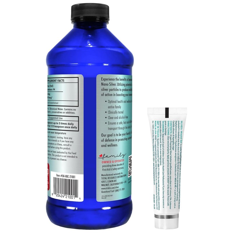 Be Smart Get Prepared Nano Silver Combo (2-in-1) Pack - Includes SILVEX Wound Gel (0.5 oz) and Nano Silver Immuno Boost (16 oz) - Wound Care & Immunity - Family Safe