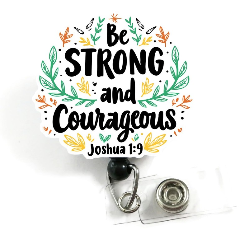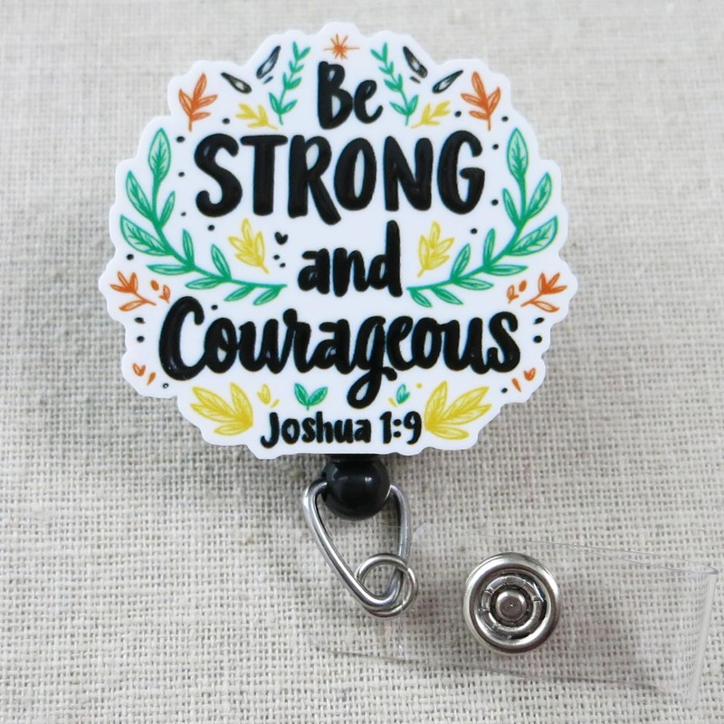 Be Strong and Courageous Badge Reel – Joshua 1:9 Inspirational Bible Verse ID Holder, Encouraging Christian Scripture Quotes Badge Reel, Religious Badge Holder for Faithful Inspiration
