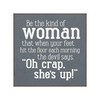 Be the Kind of Woman, the Devil Says Crap She's Up Sawdust City Rustic Wooden Sign - Solid Knotty Pine & Distressed Wood - White Stenciled Wall Art Room Decor - On Slate Grey Background 7x7