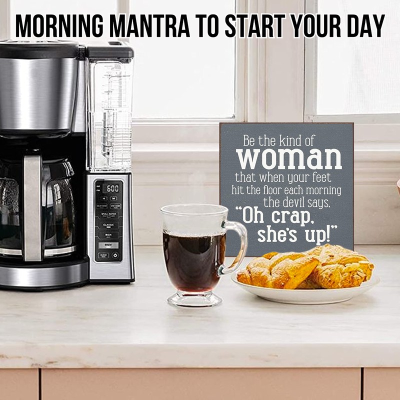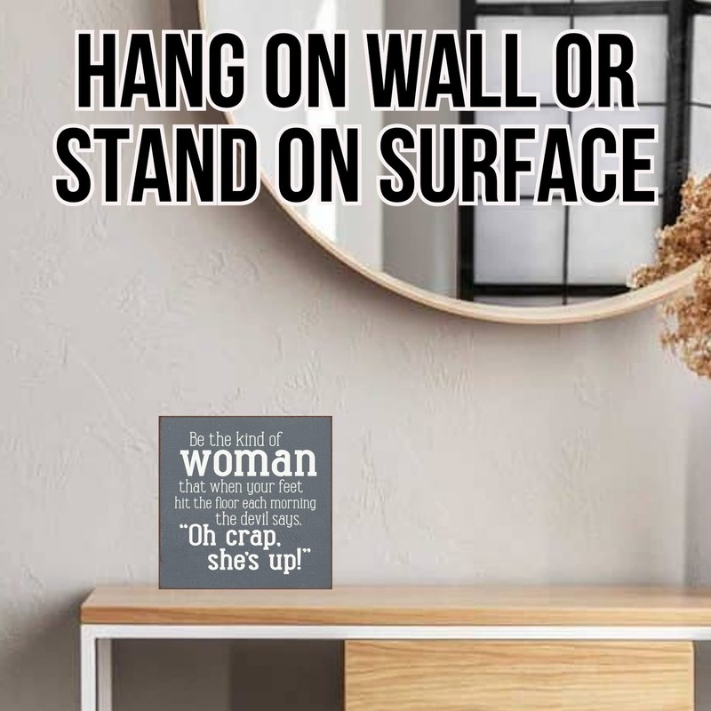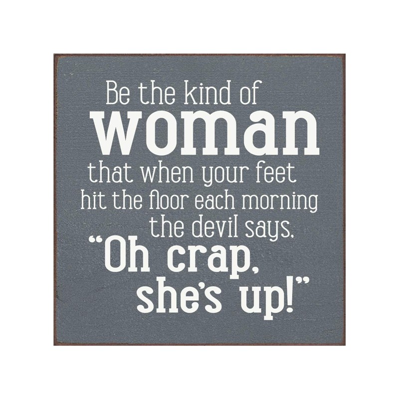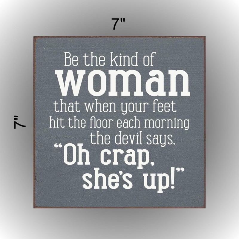 - BE THE KIND OF WOMAN THAT MAKES THE DEVIL SAY CRAP SHE'S UP - This is a sign with a strong message. This encouraging sign shows you to be fierce and strong and to not let others intimidate you