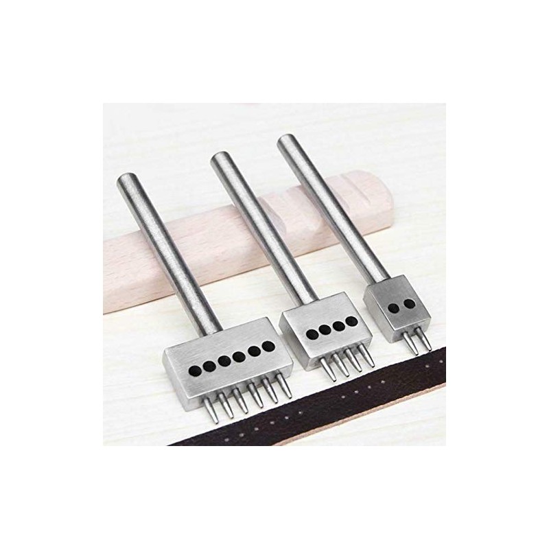 BE-TOOL 2 Pcs Leather Craft Lacing Sewing Hole Punch Hand Tool Silver