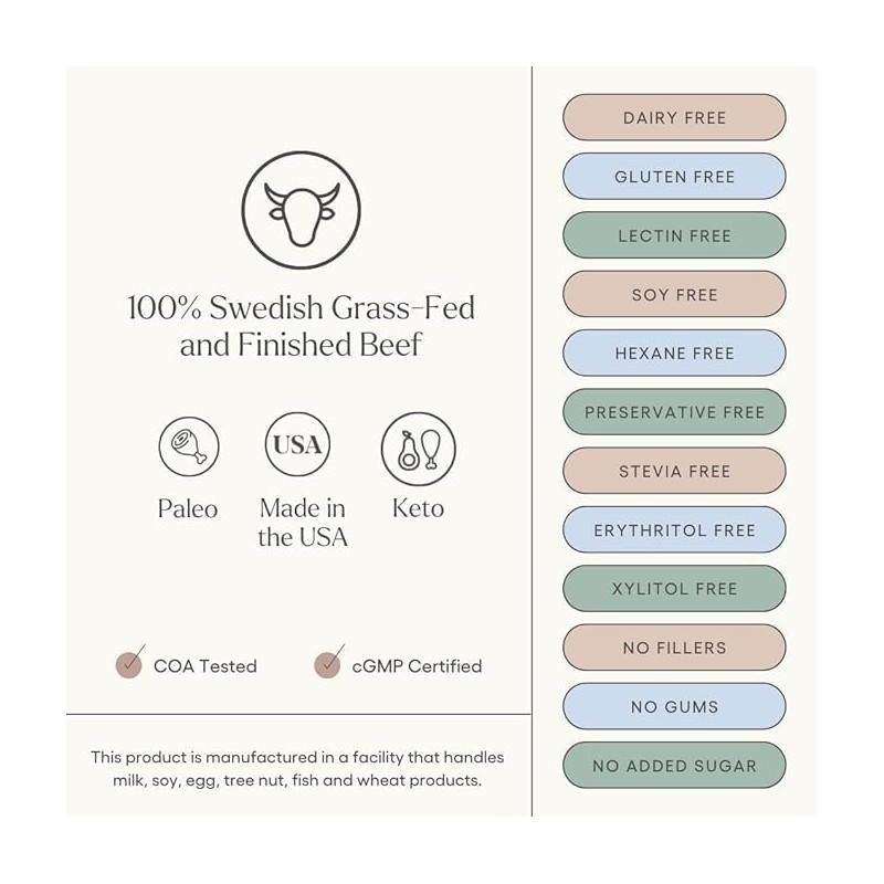 - ONLY 3 INGREDIENTS: Grass-fed beef isolate, organic chai blend, organic monk fruit extract. (Organic Chai Blend: Organic Ceylon Cinnamon Powder, Organic Ginger Powder, Organic Cardamom Powder, Organic Clove Powder, Organic Nutmeg Powder, Organic Black Pepper Powder, Organic Vanilla Bean Powder)