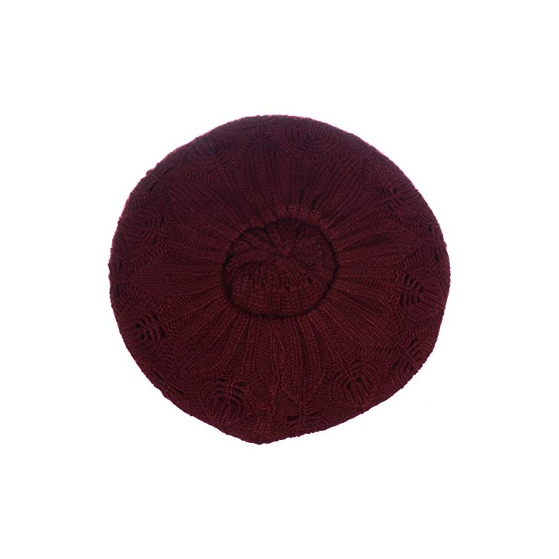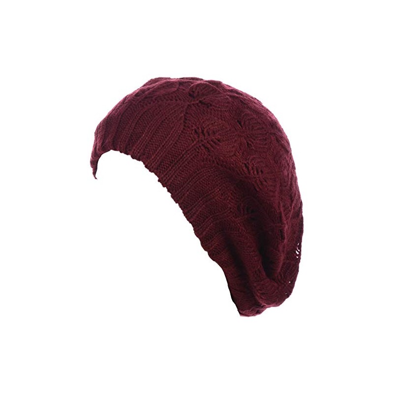 Be Your Own Style BYOS Winter Chic Warm Double Layer Leafy Cutout Crochet Chunky Knit Slouchy Beret Beanie Hat Solid