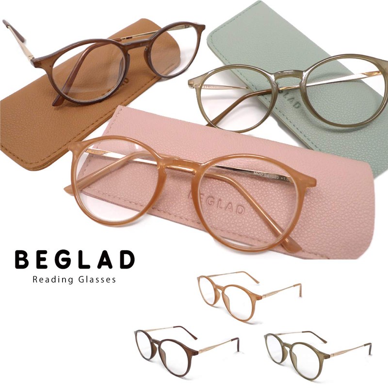 [ビグラッド] おしゃれなケース付老眼鏡 BE1020 3カラー トレンドカラーとボストン型がおしゃれ ケースの淡い色合いが可愛い (ピンク、+2.0)