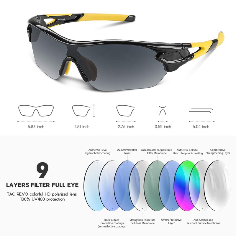 • 【SOFT ANTI-SLIP RUBBER NOSE PAD 】- Soft and Anti-slip rubber nose pad to avoid sunglasses dropping down while sweating and fit well on the face. Make your nose feel comfortable while wearing these polarized sports sunglasses for cycling running fishing golf and many sports.