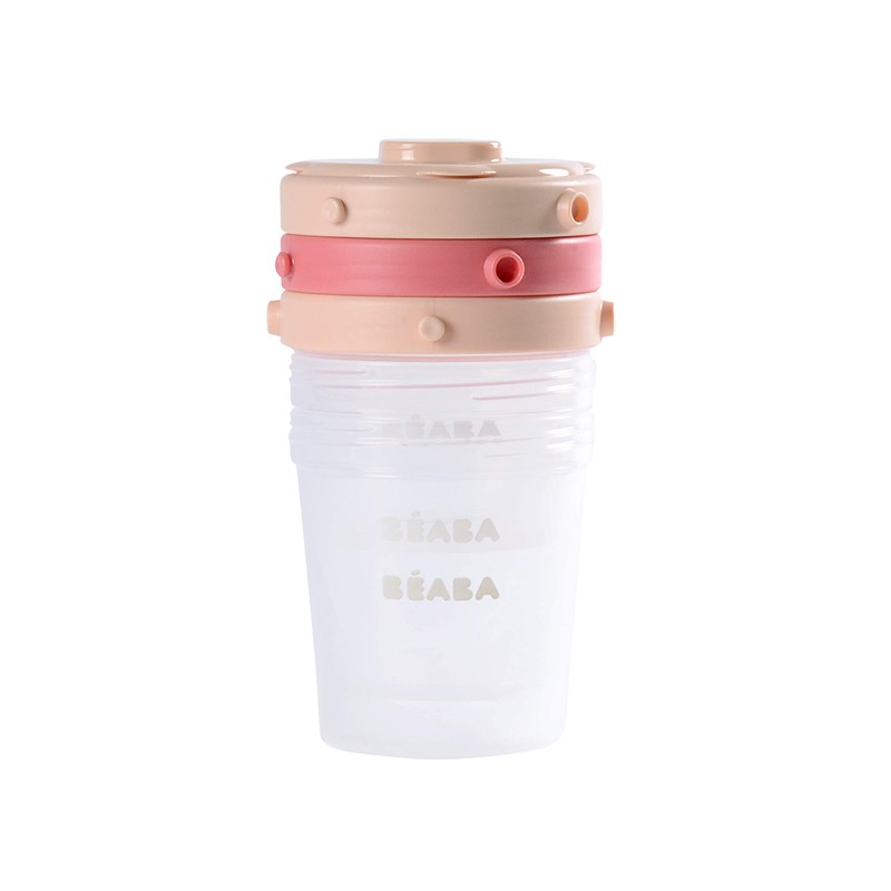 BÉABA - Set of 6 Baby Food Storage Container - Stackable and Clippable pots - 100 Percent Airtight with Measurement indication - Freezer Safe - 2 x 60 ml + 4 x 120 ml - Pink