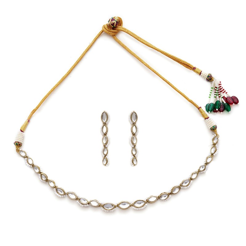 BeAbhika Marquise Necklace Set with Matching Earrings | Elegant Single String Design Indian jewellery for Women, Zinc, No Gemstone