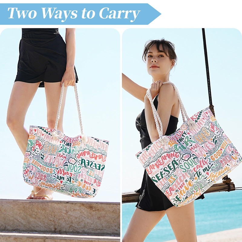 - 👜FASHIONABLE PATTERN - Our beach tote bag has exquisite design, excellent workmanship, easy to carry, and impeccable style. Sturdy & comfy rope handles with knots sewn under the inner lining to avoid any zip hurdles, make the beach tote a great over the shoulder handbag for women. It is an indispensable item for vacation.