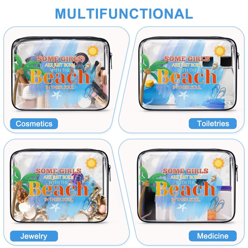 Beach Lover Gift Beach Themed Makeup Bag Beach Travel Gifts Summer Lovers Vacation Gifts Girls Trip Gifts Clear Cosmetic Bag Pouch Birthday Christmas Graduation Gift for Women Girl Teens Beach Lover