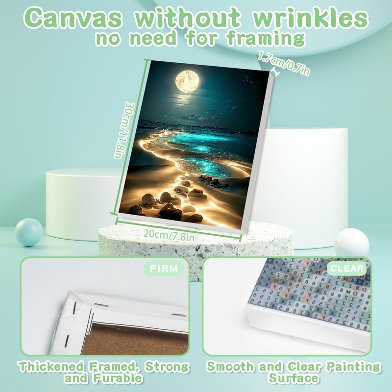 - 💎【Vivid HD Color Canvas and Sturdy Framing】Crafted with special HD color canvas, our Diamond Painting Kits feature vibrant colors that clearly define each digital area, reducing eye strain during long painting sessions. The framed canvas, complete with a wooden easel, ensures a smooth, wrinkle-free surface and eliminates the need for an extra frame, providing versatile display options for showcasing your masterpiece effortlessly.