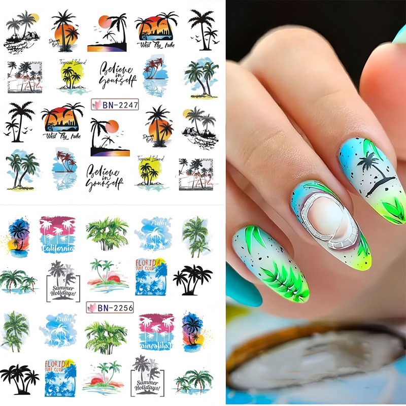Beach Nail Art Stickers Decals Summer Nail Art Supplies Water Transfer Green ...