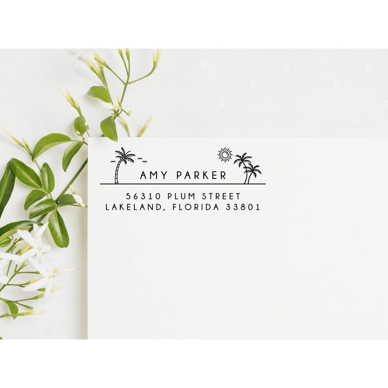 Beach Return Address Self Inking Stamp, Palm Tree Address Stamp, 1 x 2.5 inches