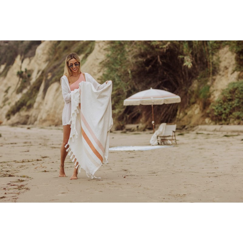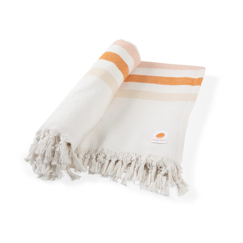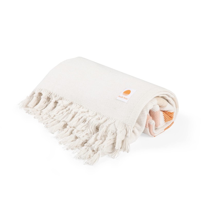 BEACH STATE Oceanside Beach Blanket, 66" x 80", 100% Cotton Premium Picnic Blanket, Oversized Beach Towel with Fringe, Boho Beach Accessories (Sunset Stripe)