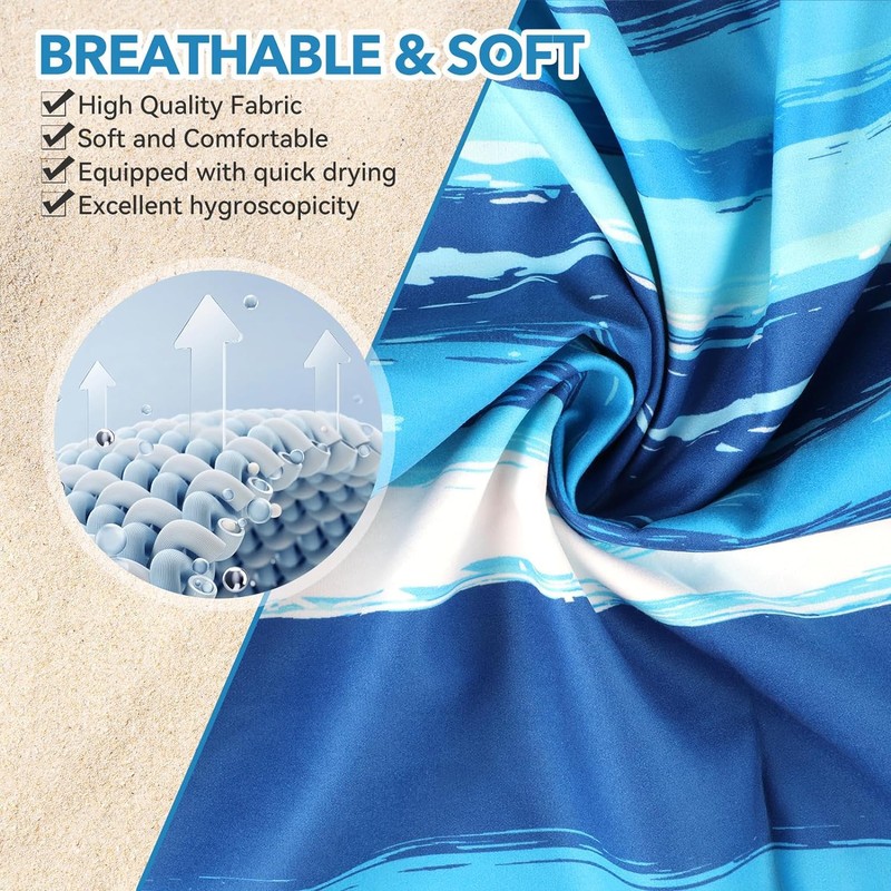 • Multifunctional design: the beach towel can not only be used to dry the body, but also as a beach mat, shoulder scarf, scarf and many other purposes