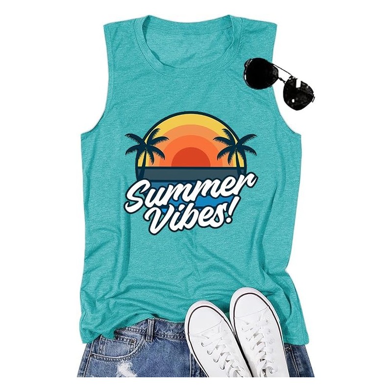 - 【Fabric】 This stylish women's summer tank top is crafted from a soft, breathable cotton-blend fabric that resists shrinking and fading even after multiple washes. The sunset-inspired design adds a trendy touch, making it a must-have staple for summer wardrobes.