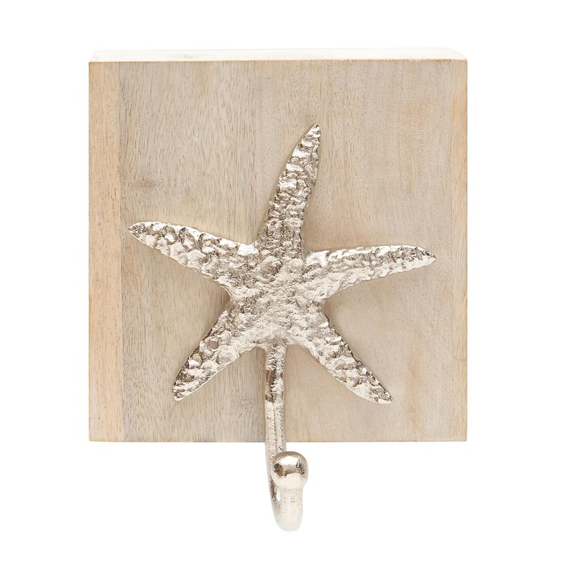 Beachcombers Mango Wood Nautical Wall Hook. 5.5-inch Length, Wall Hanging Ornganizer (Sea Star), Gold, B2622