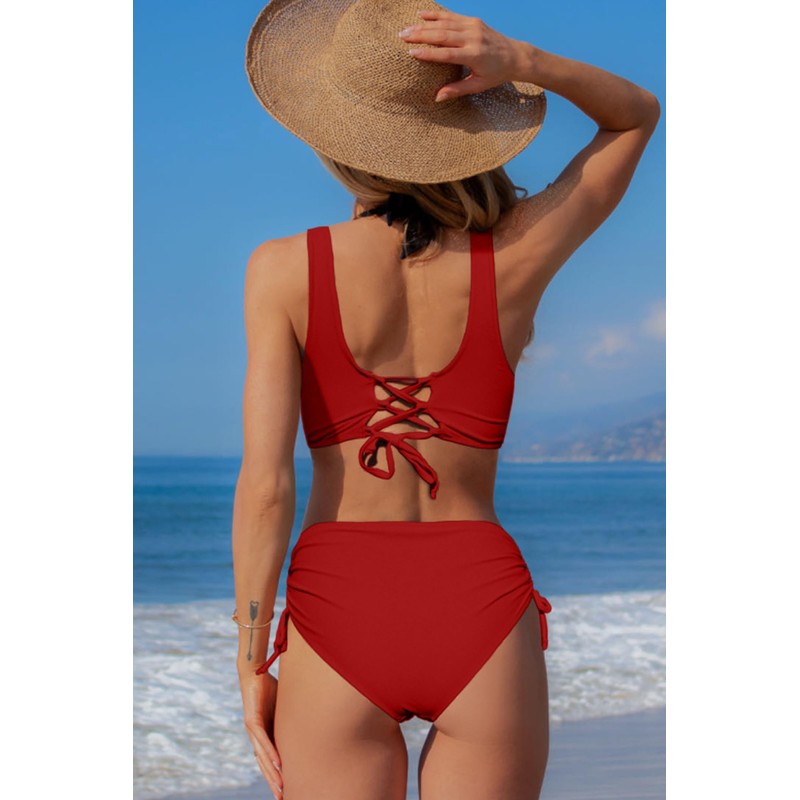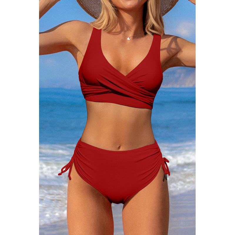 Beachsissi Women's Cross Back Swimsuits, Leopard, Twist Front, Swimwear, Drawstring, Side Bikini Sets, red