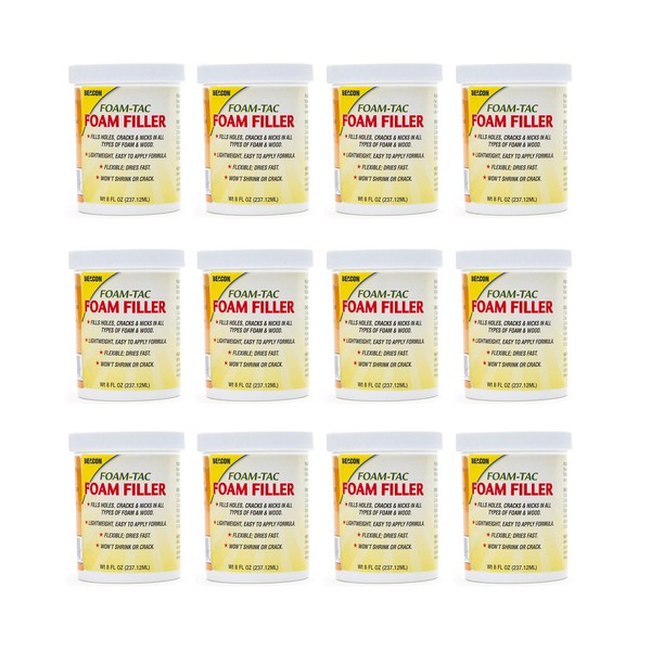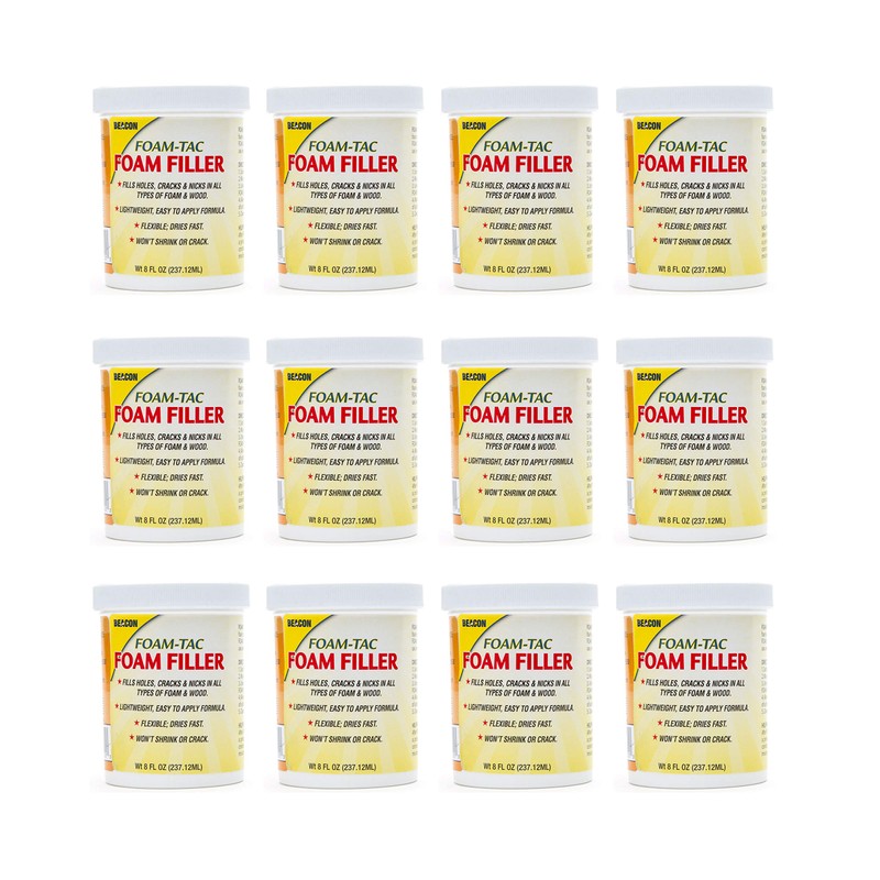 Beacon Foam-Tac Clear Foam Filler Paste, 8-Ounce, 12-Pack