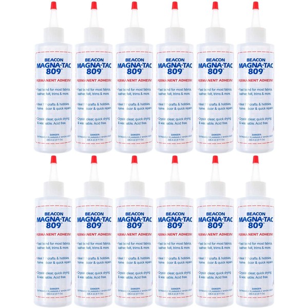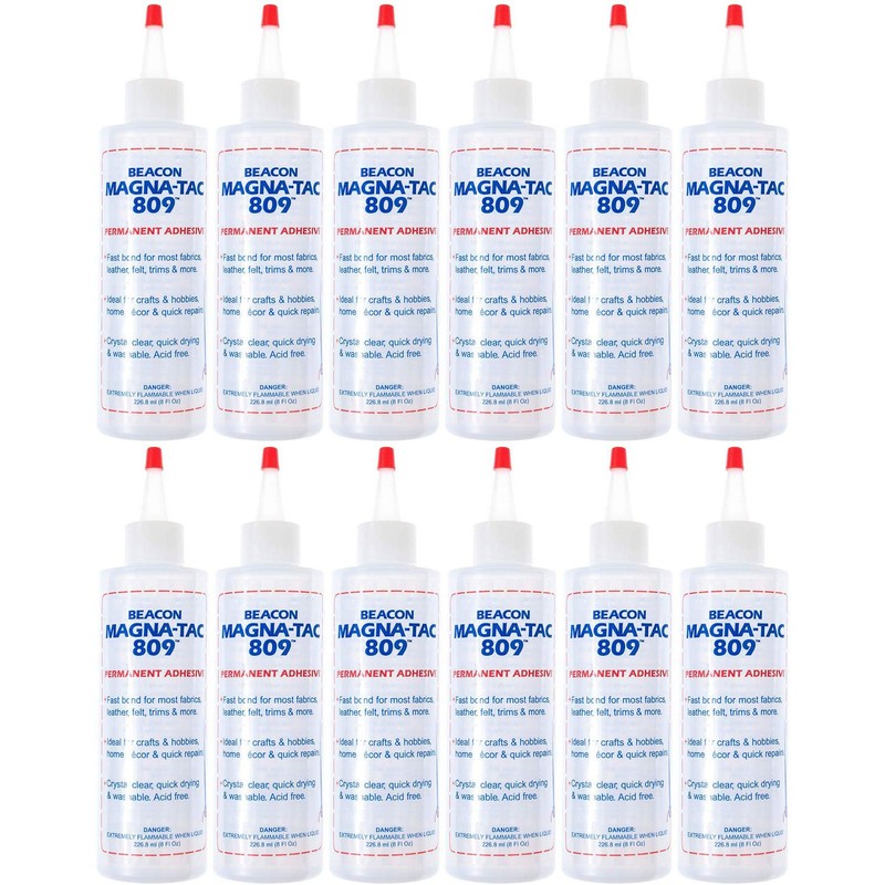 BEACON Magna-Tac 809 Permanent Adhesive - Trusted Fabric Glue for Fashion Design and Quick Clothing Repairs, 8-Ounce, 12-Pack