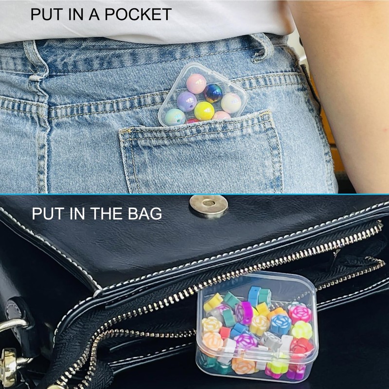 - 【PERFECT SET】The big organizer case has 2 buckles, which is dustproof and the top and bottom have a good anti-slip design, so that more boxes can be stacked to save more space. All the small boxes can easily fit inside the big box, or can be stored separately, you can put it in a shirt pocket or throw it in a makeup bag for easy to carry out. You can put white self-adhesive stickers on each small box and write a different product name, so it is very convenient to find the items you want