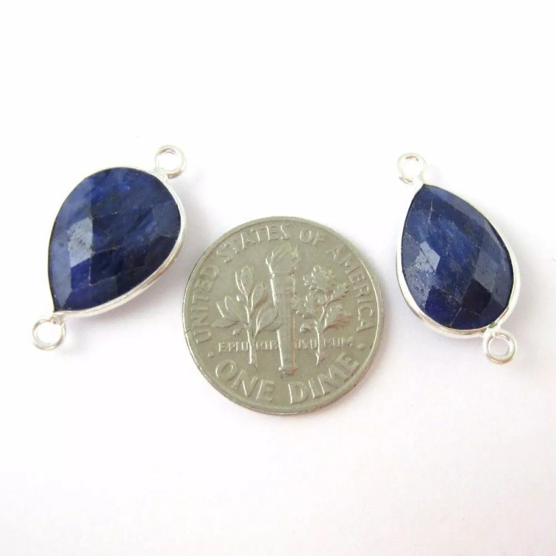 Bead Union Bezel Gem Links-Sterling Silver-Faceted Teardrop Shape-Blue Sapphire Dyed (2Pcs)