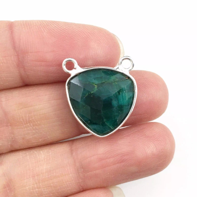 Bezel Gem Links- Sterling Silver-Small Trillion-15mm-Emerald Dyed-1pc | ||||||||||||||||||