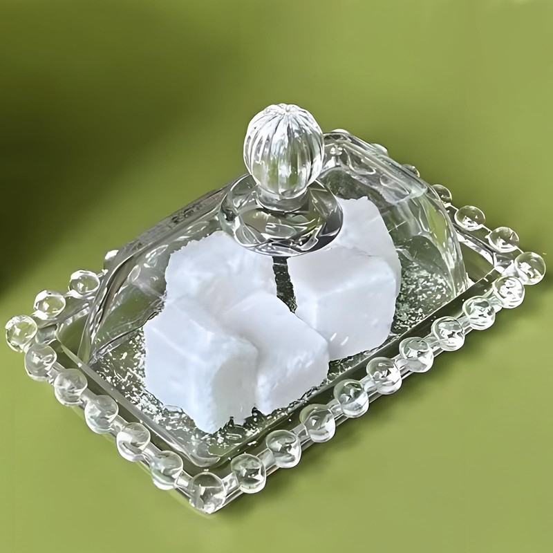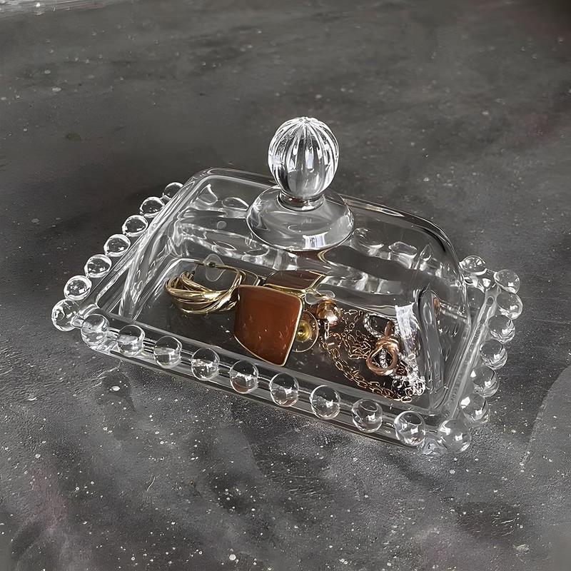 Beaded Glass Butter Dish wiht Lid, Classic Covered 2-Piece ,Clear Rectangular...