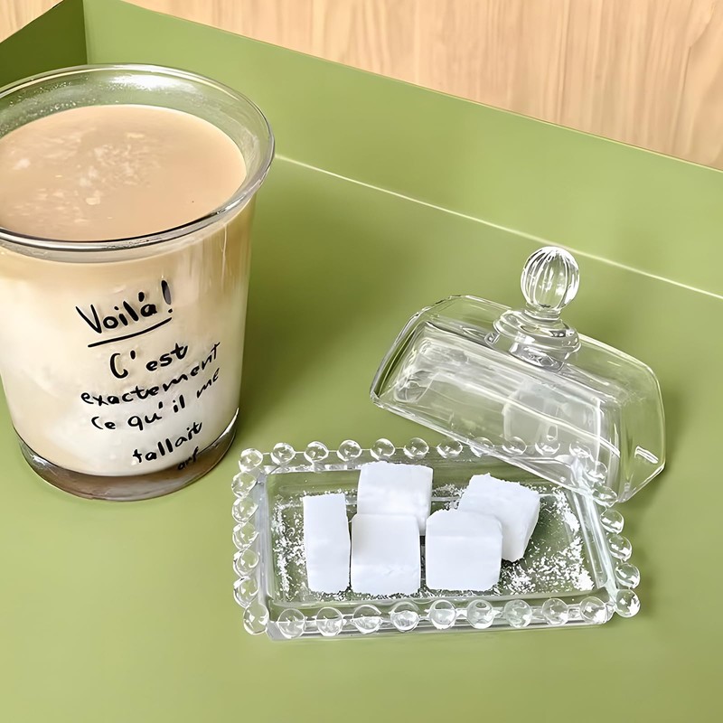 Beaded Glass Butter Dish wiht Lid, Classic Covered 2-Piece ,Clear Rectangular, Dishwasher Safe