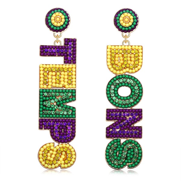- ⚜Mardi Gras Earrings-- Mardi Gras carnival earrings in bright colors, simple lettering design.These carnival colored letter have glitter Fleur De Lis Love earrings,beads Bons Temps Earrings and beaded Mardi Gras earrings,they're perfect for your carnival party parade.