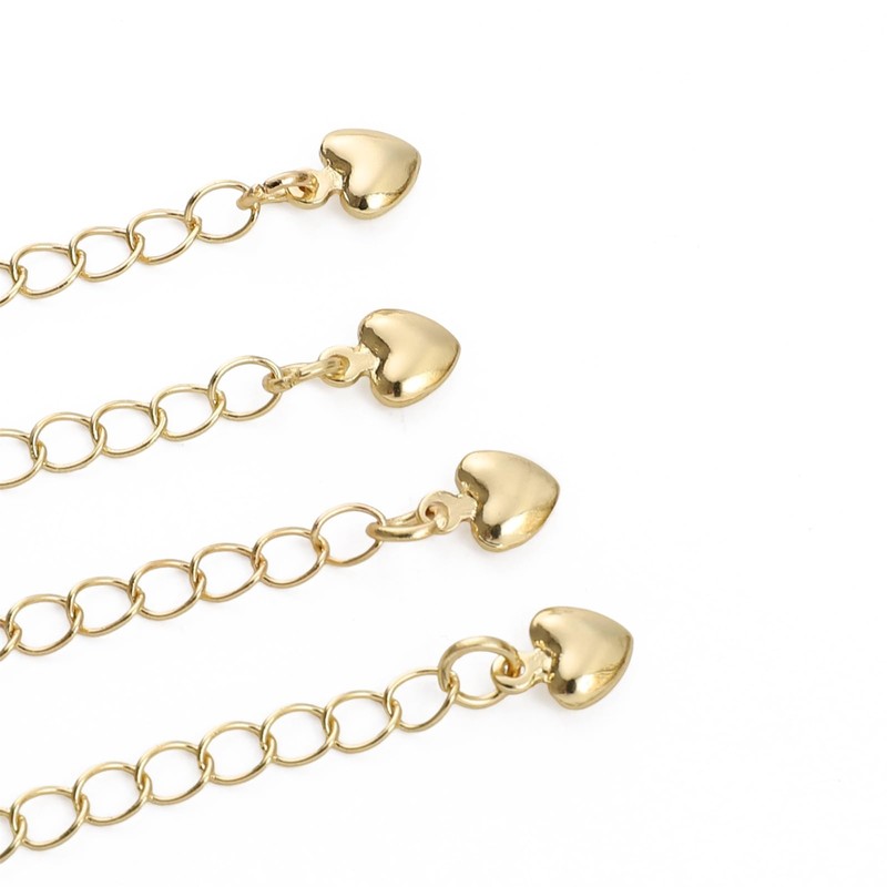 BEADIA 14K Gold Plated Extender Chains 75mm 20pcs Smooth Heart Extension Tail Chains for Jewelry Making Findings