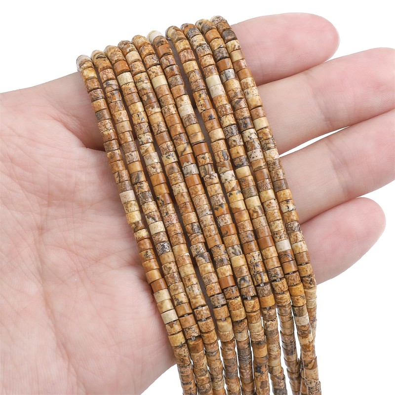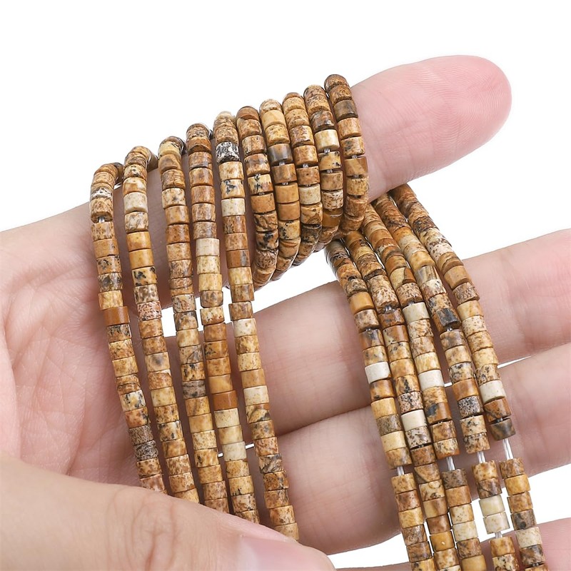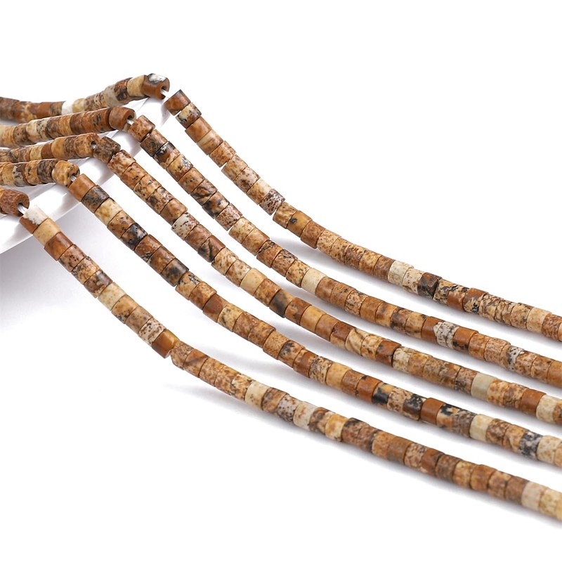 BEADIA Natural Brown Picture Jasper Spacer Beads Caps Flat Round Loose Beads for Beading Jewelry Making 3mmx2mm 38cm