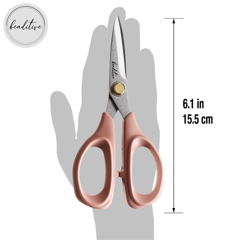 Beaditive Sewing Scissors - 6 Inch Stainless Steel Fabric Scissors - Professional Scissors with Serrated Blade - Comfortable Craft Cutter and Tailor Scissors (Light Coral)