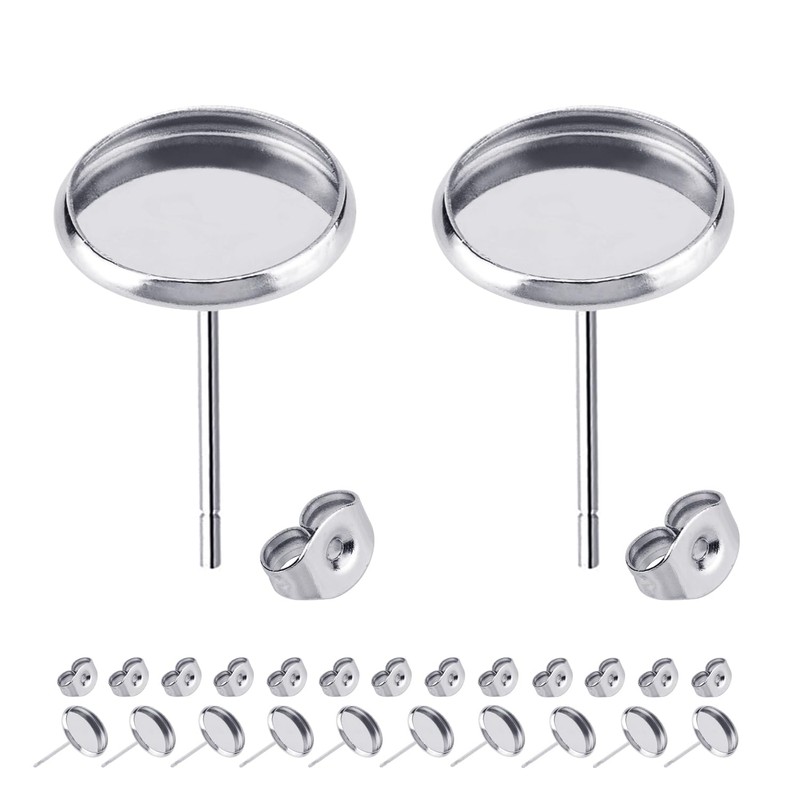 - CABOCHON SETTING POST: Package Includes 60 pcs 8mm or 0.31" (inner diameter) cabochon setting post. Earring post is 10mm long, 0.7mm diameter or 21 gauge. Come with the pack matching stainless earring backs.