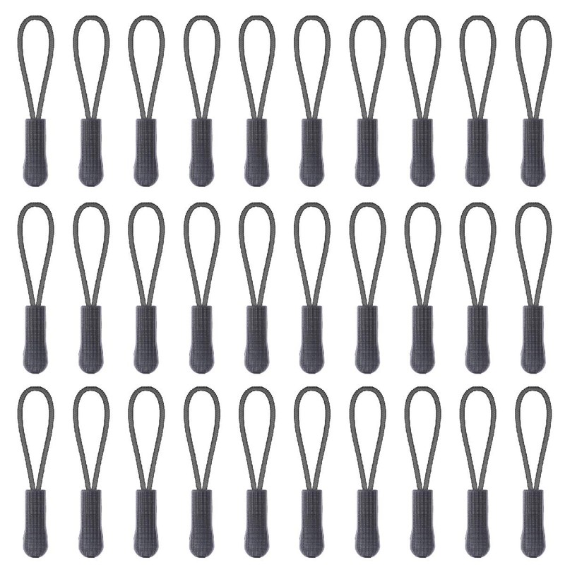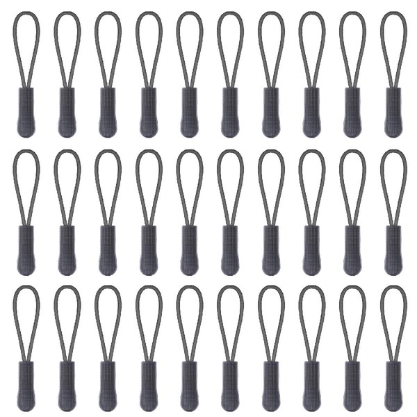 BEADNOVA Zipper Pull Replacement Zipper Extension Pulls Nylon Cord Pull Zipper Extension for Jacket Suitcase Backpack Luggage Bags (Grey, 30 PCS)