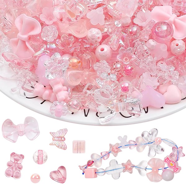 - (Product Details) Package weighs approximately 3.5 oz (100 g), and contains approximately 130 pink decorative beads, various beautiful beads and parts. Can be used as part of any accessory