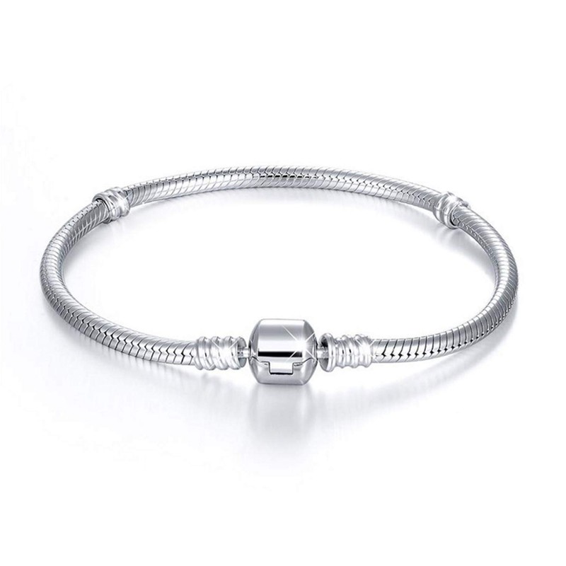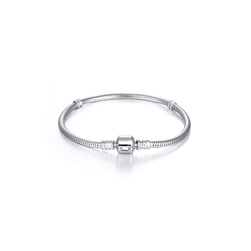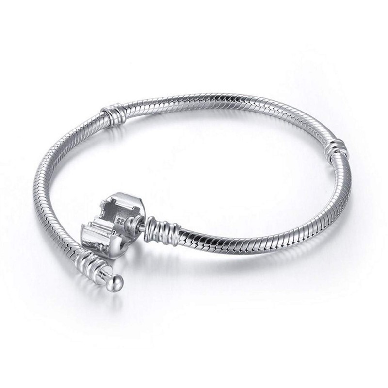 Beads R Us ® - Sterling Silver Snap Clasp Snake Chain Charm Bracelet, Compatible with all makes of European Beads, Charms, Clips and Stoppers, available in 9 Sizes. (22)