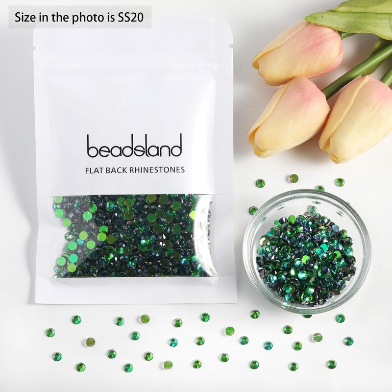 BEADSLAND Beadsland 1440pcs Flat Back Crystal Rhinestones Round Gems for Nail Art and Craft Glue Fix, Aurora Green, SS10, 2.7-2.9mm